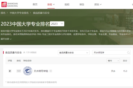 近日,高等教育评价专业机构软科发布2024中国大学专业排名,pp电子平台官网食品质量与安全专业首次进入该榜单,全国排名与甘肃中医药大学、山东农业工程学院并列137位,专业评级为B,实现了历史性突破。该榜单的首次进入,表明食品质量与安全专业建设步入了快车道,实现了专业持续、快速发展。