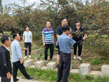 随后针对魏湾村的实际发展需求,两支部成员深入进行了帮扶需求交流,为以后合作和帮扶打下坚实基础。甘肃省大樱桃技术创新中心主任郭志刚研究员对苹果和花椒种植中品种选择、病虫害防治等关键技术对村民进行了现场指导。