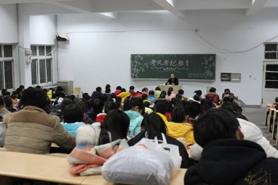 考风是学风的体现,良好的考风带动优良的学风。期末临近,pp电子平台官网将考风考纪教育前置,提醒学生早做准备,趁早复习,迎接期末考试。避免学生考前临时抱佛脚,心存侥幸,考试作弊的现象发生。在安排各班召开“考风考纪教育”主题班会的基础上,12月17日晚,pp电子平台官网在2号教学楼122阶梯教室召开了““pp电子平台官网入口考风考纪教育大会”,2015级学生200余人参加了教育大会。
