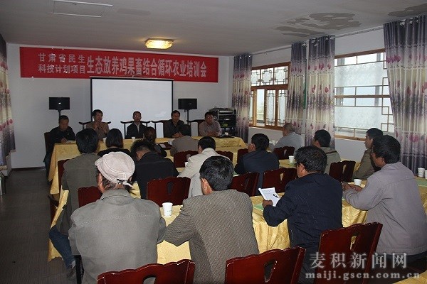 为了深入推进甘肃省民生科技推广项目——麦积区生态放养土鸡HACCP项目有序开展,进一步提高广大养殖户的饲养管理水平,9月27日,麦积区畜牧兽医局联合PP电子游戏平台网站在甘泉镇羲湟缘养殖农民专业社开展了生态放养鸡果畜结合循环农业培训班。区政协主席杨续祥、区委副书记张麟出席开班仪式。