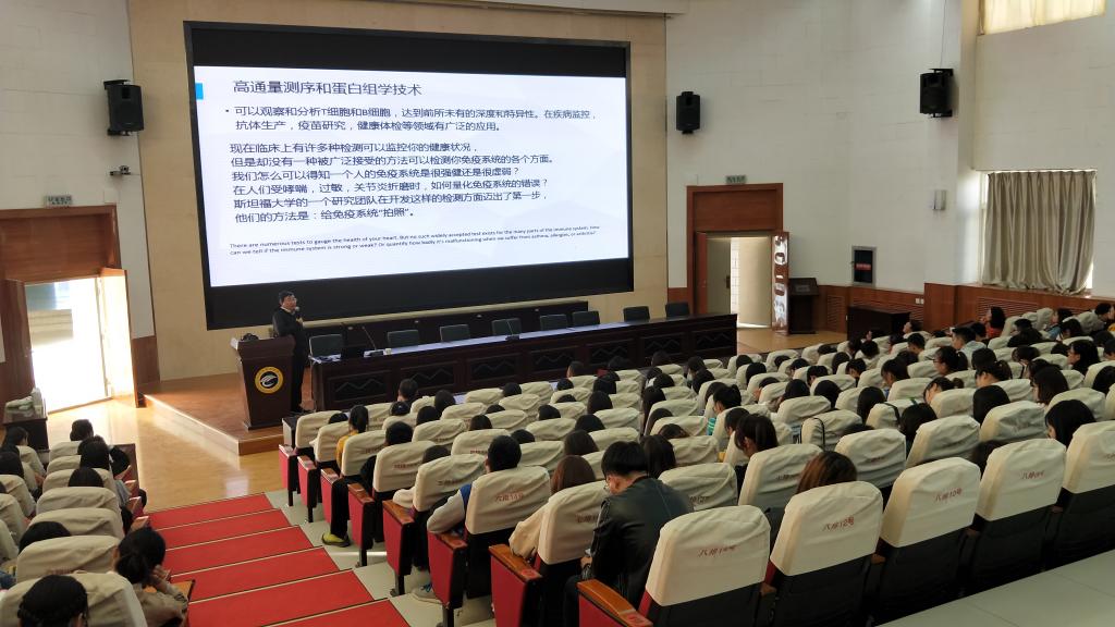 2018年10月9日下午3:00,应pp电子平台官网入口邀请,齐鲁动物保健品有限公司首席技术专家段小波博士在二号报告厅为pp电子平台官网200多名师生做了题为“应用现代高通量测序和人工智能技术加速抗体药物研发”的学术报告。