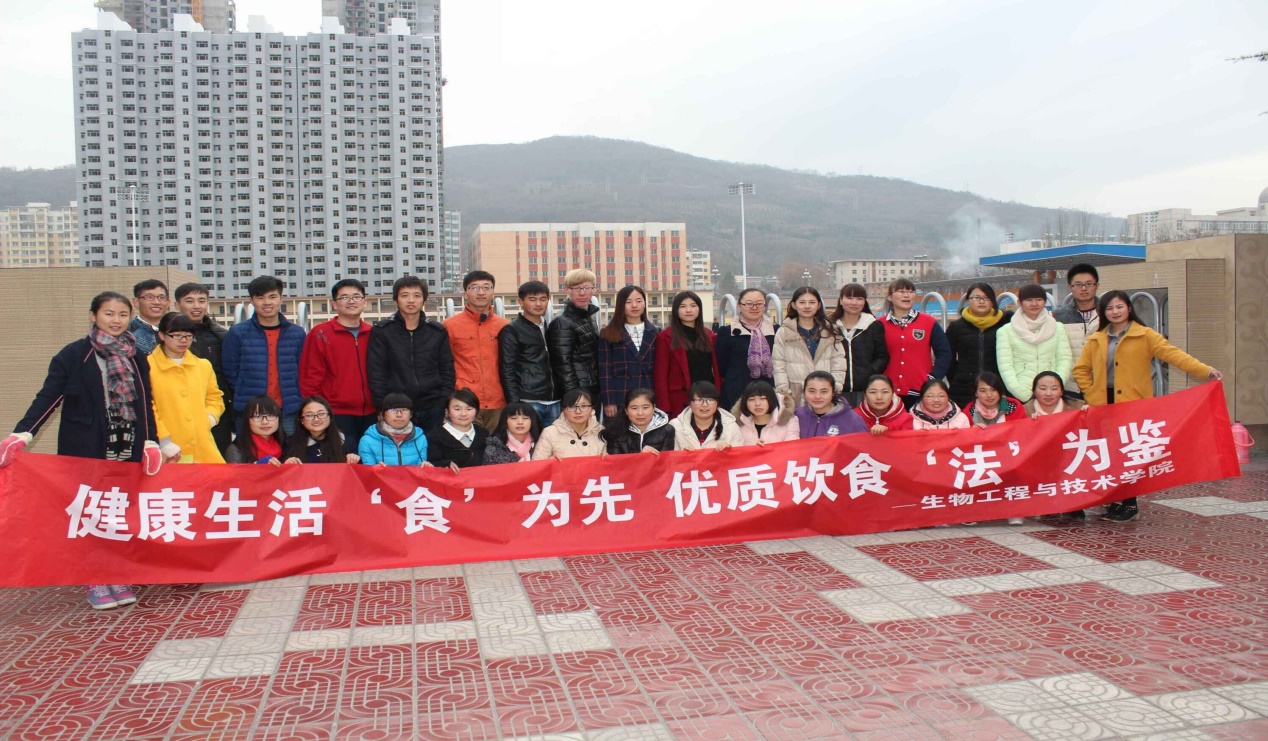 2015年12月4日,pp电子平台官网入口于塑胶操场正门口举办了主题为“健康生活‘食’为先,优质饮食‘法’为鉴”的食品安全知识宣传和咨询活动。本次活动由pp电子平台官网入口分团委主办,pp电子平台官网入口13级食品质量与安全班承办,共计170余名参与了此次科普宣传服务活动。