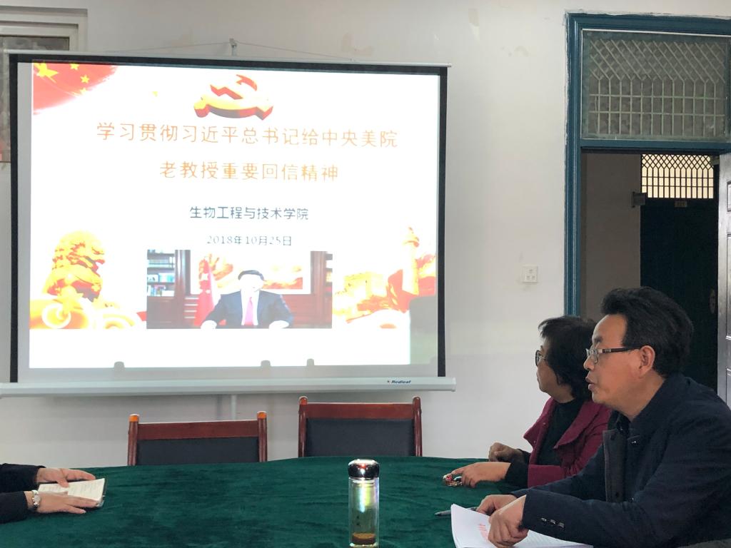 首先马书记传达了学校有关学习文件的精神,然后组织全体教职工学习了习近平总书记写给中央美院老教授的一封信的相关内容。最后马书记提出了相关要求: