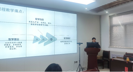 参赛教师结合教学大纲和教学实践,全面说明整门课程的设计思路,突出教学改革方法创新,并展示了相关教学过程性支撑资料。通过评分及教师答疑,周向军获得初赛一等奖,王静、王霞获得初赛二等奖,刘艳梅、李一婧、马芳获得初赛三等奖。并最终确定推荐王静和邓霏两位教师,代表学院分别参加学校副高、中级组别的教师教学创新大赛决赛。