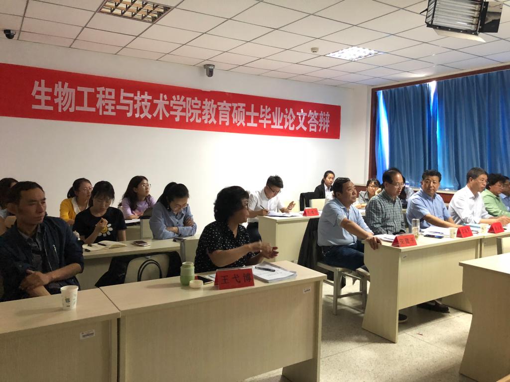2018年6月2日,在4号实验楼517微格教室举行了pp电子平台官网入口2018届教育硕士毕业论文答辩会。为保障答辩质量,学院专门成立了教育硕士答辩委员会,答辩委员会主席由西北师范大学生命科学学院龚大洁教授担任,成员包括宋廷军、石志学、安建平、焦成瑾、王弋博、袁毅君,答辩秘书为王倩宁。
