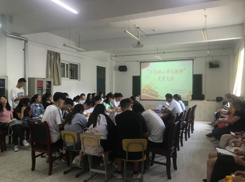 按照学校党委统一部署,在学院党总支指导下,pp电子平台官网学生党支部于8月29日下午在学院414党员活动室开展了“不忘初心、牢记使命”主题党日活动。