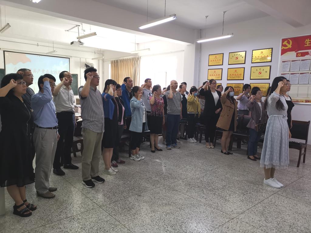 面对鲜红的党旗,全体党员庄严地举起右拳,在领誓人的带领下,用铿锵有力的声音向党旗再次宣誓,用铮铮誓言表达自己忠诚于党、奋斗不息的坚定信念,以入党誓词唤醒先进意识,增强党员荣誉感和使命感,增强党性意识,坚守党的信仰,认真领悟党的初心与使命。