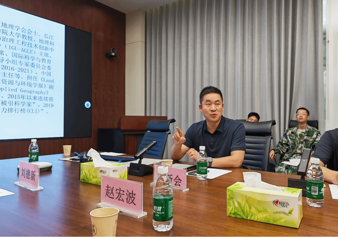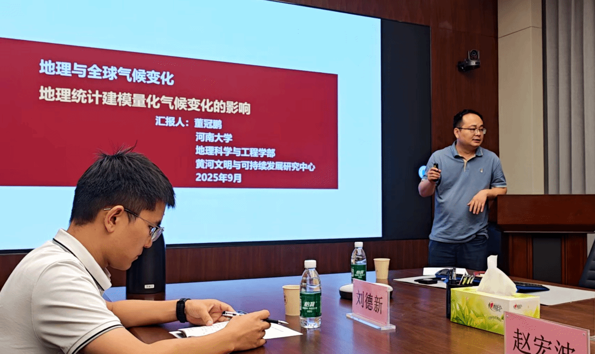 随后,董冠鹏作了题为《地理学与气候变化:经世致用的实践与探索》的主题报告。他从全球气候变化的现实问题切入,深刻阐述了地理学在应对这一全球性挑战中的重要作用,强调了数学模型在地学研究中的基础地位,鼓励同学们夯实数理基础、提升科研能力,点燃了大家对专业知识学习的浓厚兴趣与未来憧憬。
