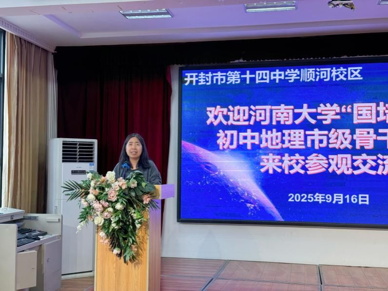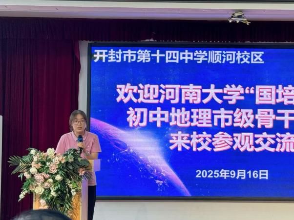 9月16日上午,伟德betvlctor体育官网学科教育硕士生导师刘桂芳教授带领“国培计划(2025)”——市级骨干教师能力提升项目(初中地理)培训班的全体学员,来到开封市十四中顺河校区进行同课异构教学交流。