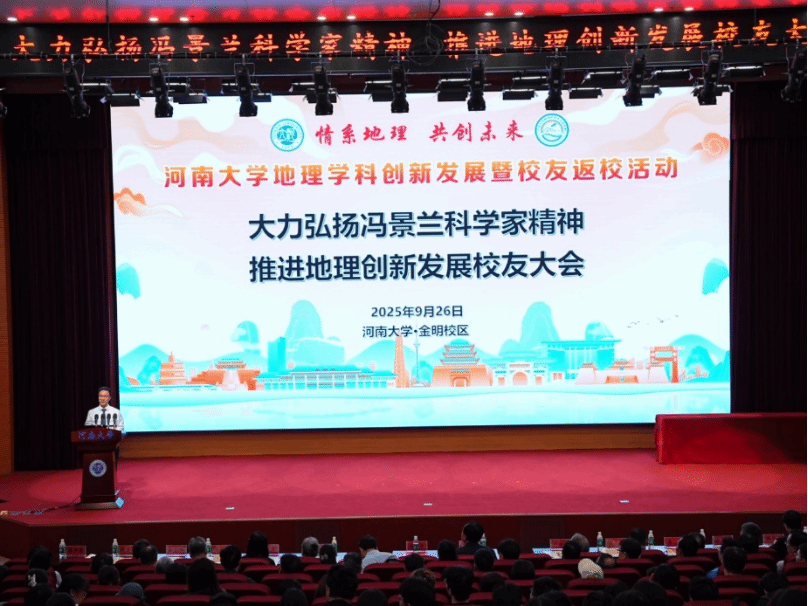 刘彦随以“传承创新、奋勇争先,开创学科建设新局面”为题对伟德betvlctor体育官网地理学科发展和地理学部建设进行了总结与展望。他强调指出,中国科学院学部委员(院士)冯景兰先生创立了伟德betvlctor体育官网地学专业,近百年来伟德betvlctor体育官网地理学科始终以“求真务实、开拓创新、报效家国”的“景兰精神”为文化内核与动力源泉,如今更加注重发挥学科交叉融合优势、创新学科文化与协同机制,主动服务国家重大战略,为国家规划决策和区域发展贡献地理学智慧。他重点介绍了2024年地理科学与工程学部成立后的创新举措和初步成效,特别强调学部正以“融合贯通、经天纬地”为部训,积极推进学科能力建设和学科范式变革,推动现代地理学转向系统性诊断、情景性模拟、工程化应用与产业化实践的四维融通创新,并持续强化高质量党建促进学科凝聚力提升、引领学科高质量发展。他指出,学部高度重视地理校友工作,着力构建校友发展共同体。近年来新成立北京、广东、江苏等12个地理学部校友分会,有效汇聚专业校友力量,促进了互助共进、共赢发展。着眼于服务国家重大战略高度和学科筑峰、“双一流”建设的关键时期,伟德betvlctor体育官网根基深厚的百年地学一定要“百尺竿头更进一步”,地理学部要站在新百年的历史起点上,以“景兰精神”为引领、以学科创新为动力,通过制定学科发展“135规划”,着力推动地理学科加入“国家队”、进入世界一流行列,高水平服务国家重大战略和国际科学前沿需求。最后,他希望伟德betvlctor体育官网近2万名地理校友、近3000名学部师生风雨同舟、携手共进,大力弘扬“景兰精神”,以更加坚定的信心、更加昂扬的斗志、更加务实的作风,凝心聚力、奋勇争先,实现地理学科筑峰与“双一流”建设的“双突破”,共同续写新时代河大地理学创新发展的新篇章。