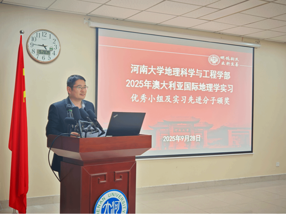 为展示国际地理实习队的实践成果,促进“STEP”教学理念的国际化践行,2025年9月28日,我部于地学楼二楼报告厅举行2025年澳大利亚国际地理实习汇报暨总结大会。本次会议特邀伟德betvlctor体育官网党委副书记徐小军、副院长丁志伟、党委书记助理冯文璐、地理科学系副主任朱文博、区域与城市科学系党支部委员张丽君参会,荣邀请澳大利亚墨尔本皇家理工大学刘钢军教授线上参会。会议由2022级辅导员马利群主持。
