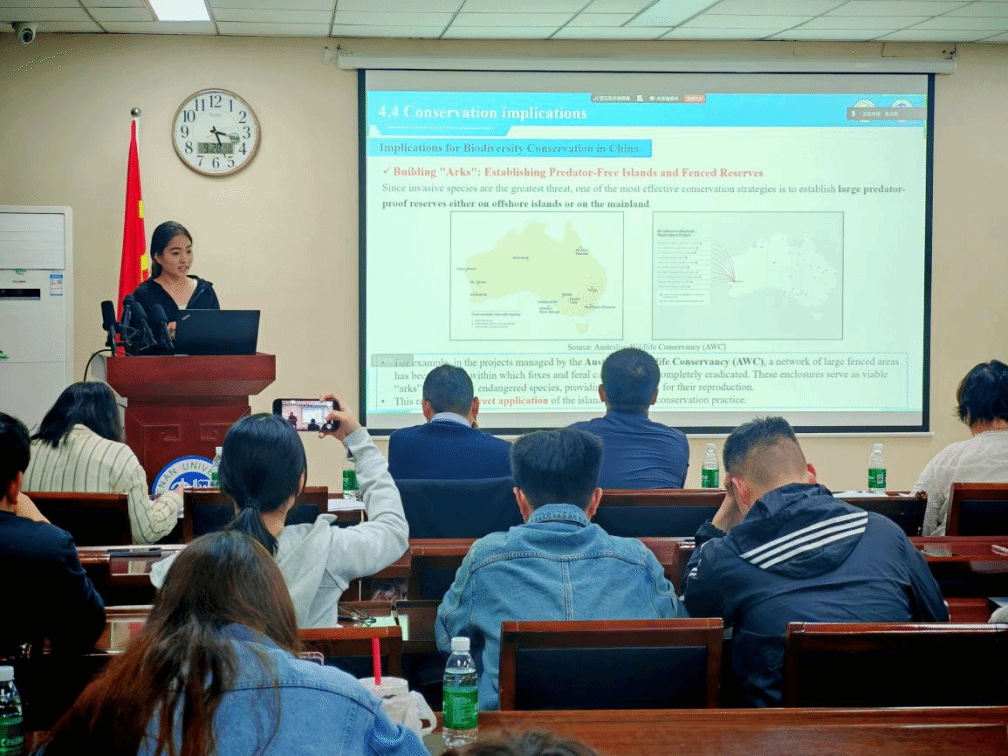 汇报会上,6个实习小组依次用ppt英文汇报。各实习队通过精心制作的实习报告,从自然地理、人文地理、生态地理、地理信息技术四大主题维度,全方位展示在澳大利亚实习期间的探索与收获。通过全员参与汇报的方式,实习队将澳大利亚实地见闻与专业知识深度结合,用科学且富有感染力的表达,呈现了澳大利亚独特地貌形成机制、多元人文景观的地理溯源、生态系统的保护与发展、地理信息技术在城市与自然空间的创新应用等丰富内容。