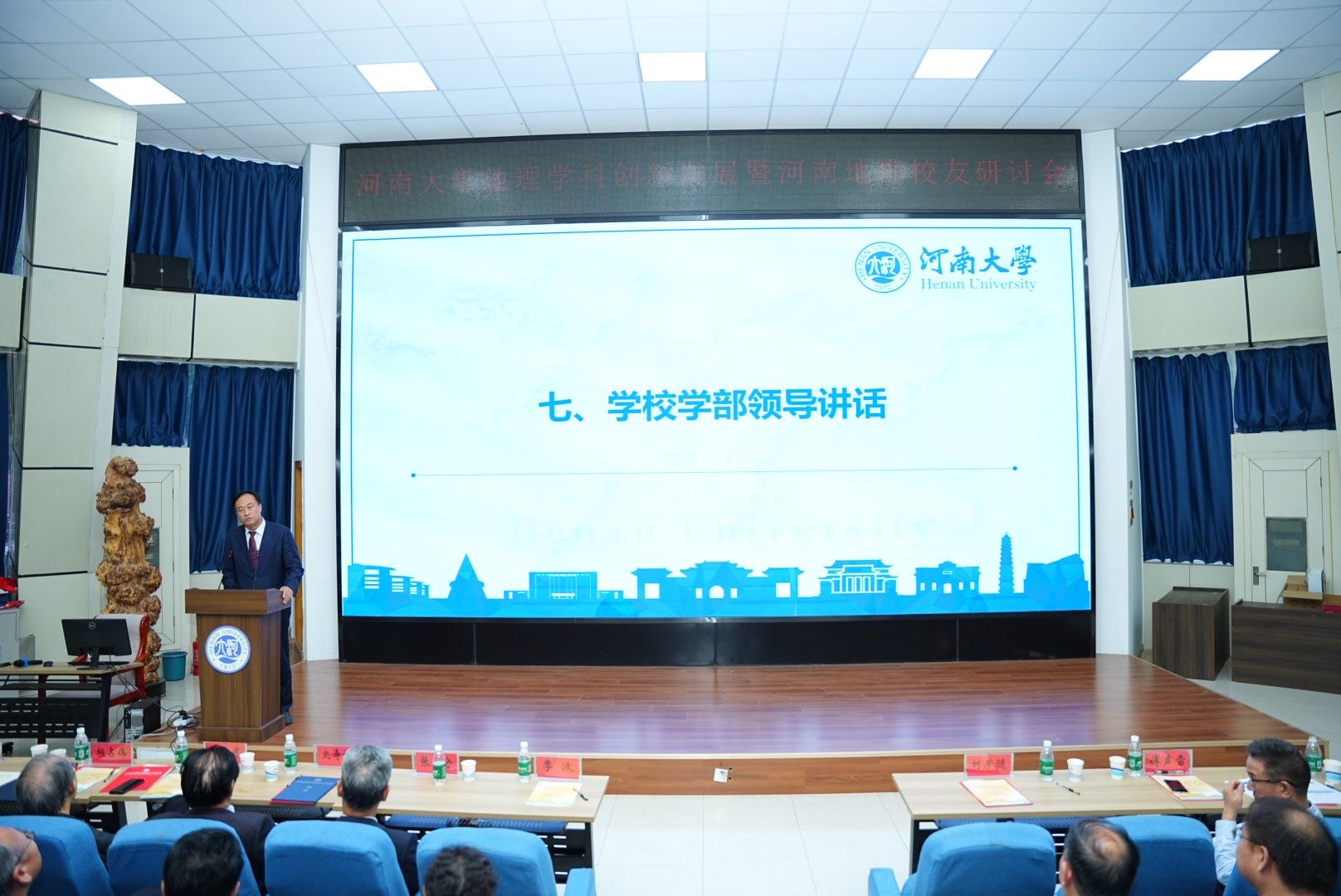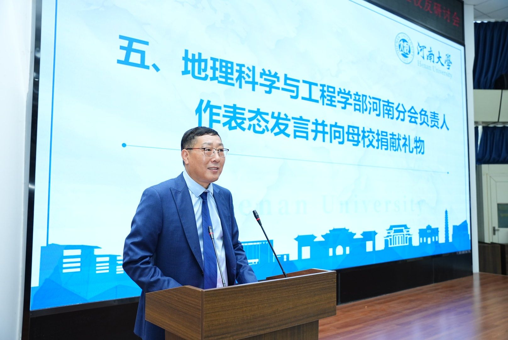 刘彦随介绍,地理学部已在空间信息技术与时空大数据系统开发、黄河流域与黄河故道地理工程、气候地理与生态地理学、中华文明基因工程研究等方面取得了重要进展。在人才培养方面,全面推行“2+2”教学改革和“双导师制”,为学生提供学术、职业、创业等多方向发展路径,并与北京大学、北京师范大学等高校开展合作,助力学生全面成长。在科研平台方面,成功共建空间基准全国重点实验室、国家乡村振兴(兰考)研究院等,实现了国家自然科学基金项目申报的历史性突破。最后,他恳请广大校友积极参与地理学部建设和学科发展平台创建工作,为地理学科筑峰和“双一流”建设贡献力量。他表示,当前地理科学与工程学部已拥有250多名正式职工,各类学生近3000人,已发展成为研究型、综合性重点学科,相信在全体师生与广大校友的共同努力下,地理学科一定能实现既定目标,为河南“双航母”、河大“双一流”建设和地理科学事业发展做出更多更大的贡献。