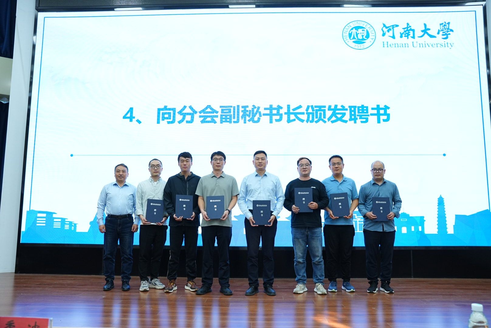 刘彦随、傅声雷、苗长虹、秦奋等分别向分会荣誉会长、名誉会长、会长、顾问、副会长、秘书长、副秘书长颁发聘书。其中,富士康工业互联网股份有限公司监事会主席张占武当选为分会首任会长,河南财经政法大学原校长李小建院士、河南省社科院原院长张占仓等担任名誉会长,李润田先生担任荣誉会长。