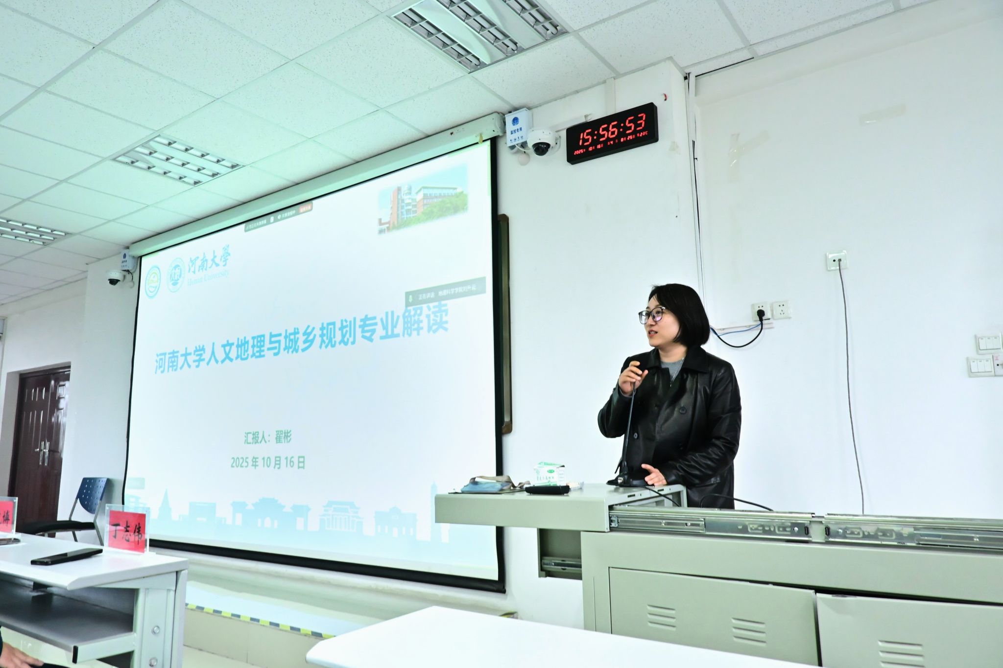 随后各系主任展开专业解读。朱文博介绍地理科学专业始终以师范培养为核心定位,围绕“师德-学识-育人-发展”构建四维培养目标。她提到,“师德”是教育初心的根基,“学识”聚焦地理学科核心知识,“育人”通过微格教学等实训锤炼授课能力,“发展”则依托国际交流项目拓宽视野。为让培养目标落地,地理科学专业不仅搭建了嵩山、日照等高水平实习基地,助力学生将理论转化为实践认知,更在国家级竞赛中收获亮眼成果,用实绩印证了该培养体系的扎实成效。