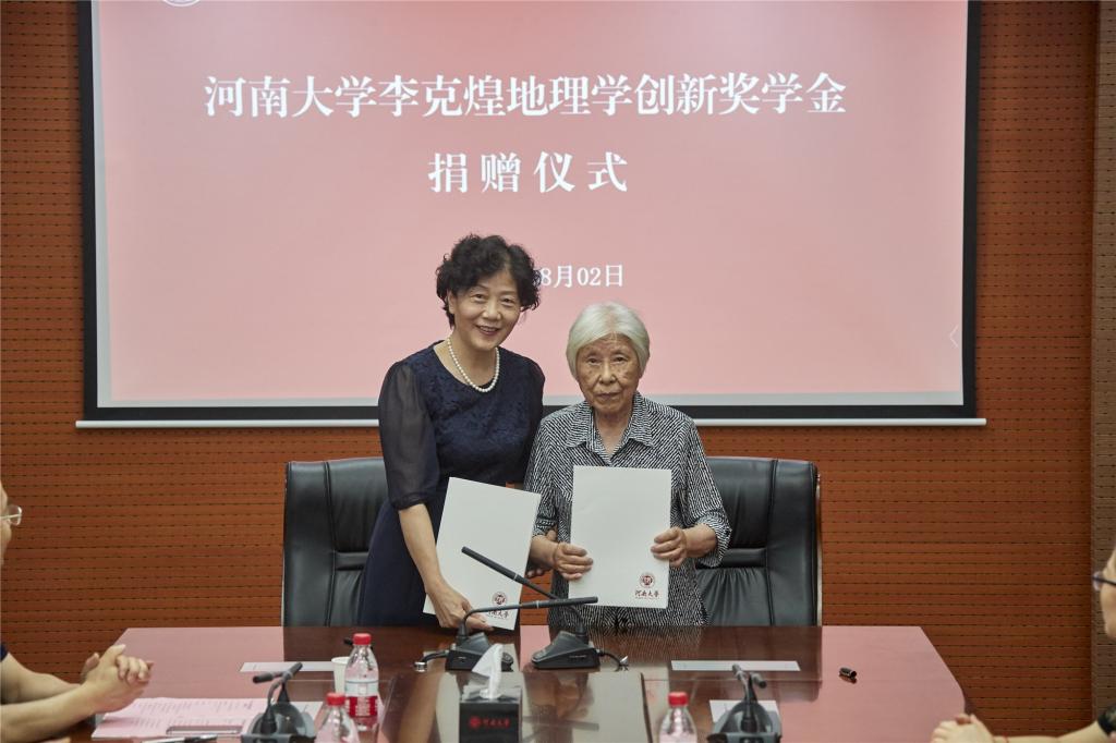 8月2日上午,伟德betvlctor体育官网李克煌地理学创新奖学金捐赠仪式在金明校区行政楼208会议室举行。李克煌夫人赵家珍女士、儿子李涛先生、女儿李芳女士及其他家人,校党委副书记雷霆,校总会计师、教育发展基金会副理事长韩守富,教育发展基金会秘书长刘波,环境与规划学院党委书记闫峻、常务副院长乔家君、国家“万人计划”领军人才秦耀辰教授、河南省教学名师马建华教授等相关领导及师生代表出席捐赠仪式。仪式由韩守富主持。